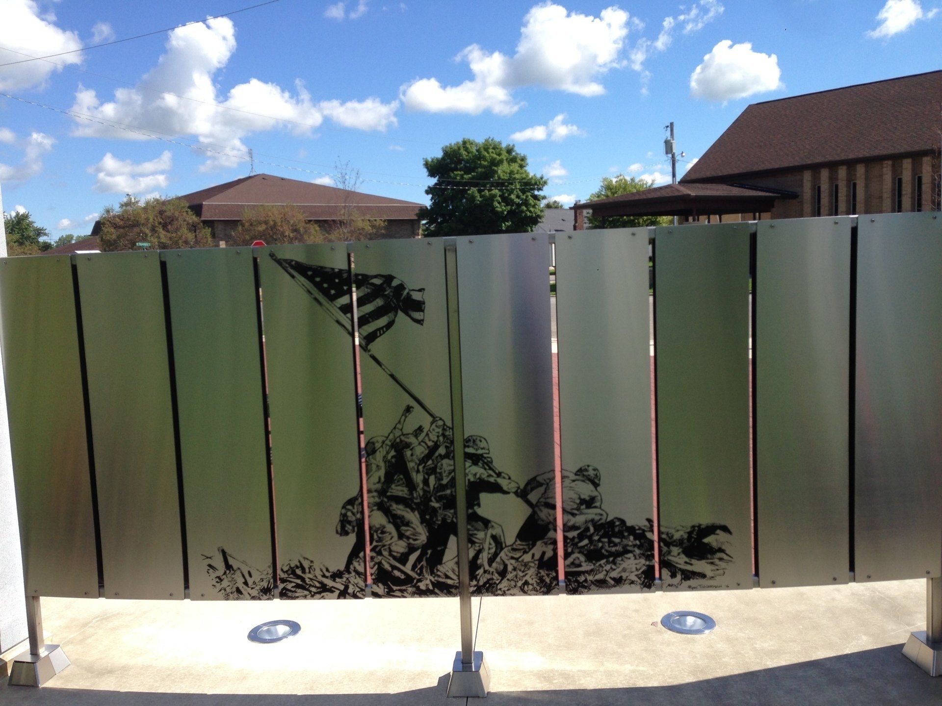 In 2016, a new monument was erected on the east side of Monument Park. The names of several hundred service men and women from all branches of military are engraved in stainless steel walls that are secured with while concrete pillars which are enhanced with medallions.